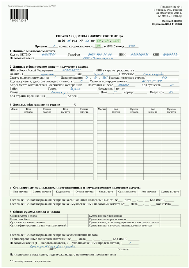 В 2016 году налоговые агенты представляли сведения о выплаченных доходах за 2015 год по обновленной форме 2-НДФЛ (утв. приказом ФНС России от 30.10.2015 № ММВ-7-11/485@ (далее — Справка 2-НДФЛ) и в соответствии с новым Порядком. Дополнительно были утверждены новые коды видов доходов и вычетов (приказ ФНС России от 10.09.2015 № ММВ-7-11/387@), которые используются при заполнении Справки 2-НДФЛ.