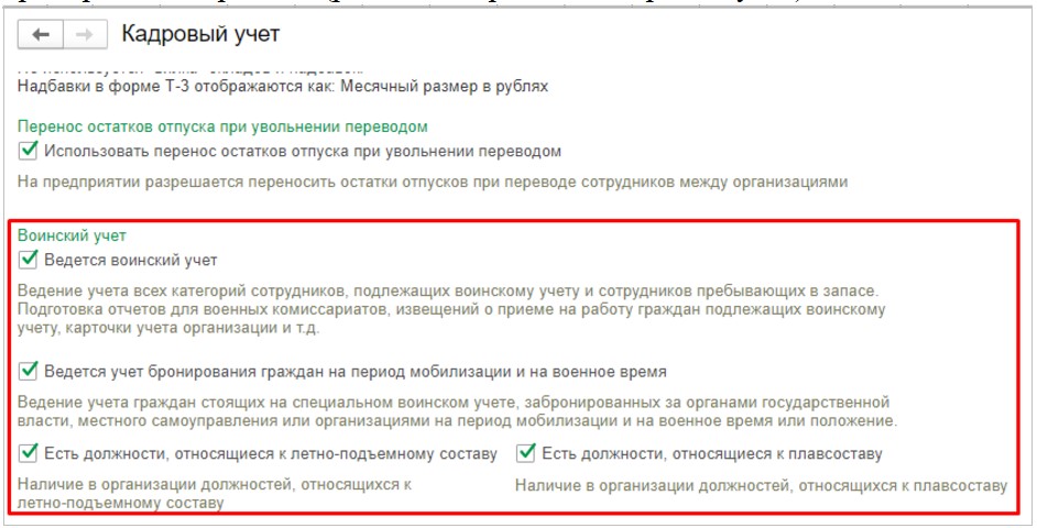 Настройка воинского учета в ЗУП 3.1