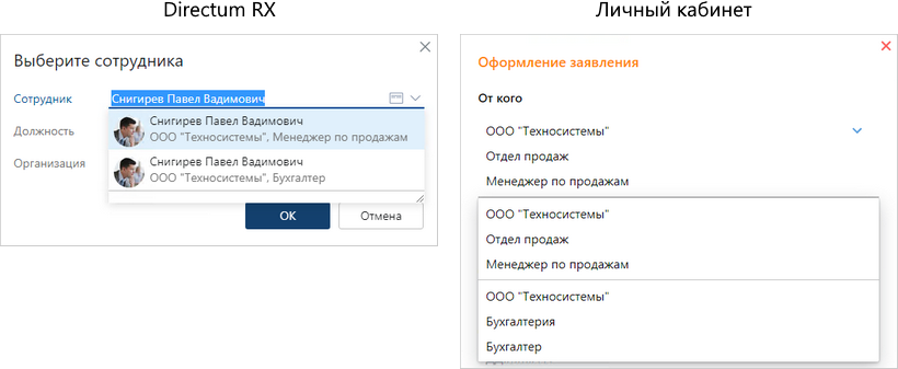 Выход есть: решения для КЭДО с высоким уровнем проработки предлагают удобный механизм. Например, в Directum HR Pro кадровый специалист создает для совместителя только одну запись в справочнике «Персоны» и несколько — в справочнике «Сотрудники». Для карточек работников, в которых указана одна и та же персона, автоматически настраивается замещение. Это значит, что человек пользуется только одной учетной записью для всех цифровых кадровых процессов.